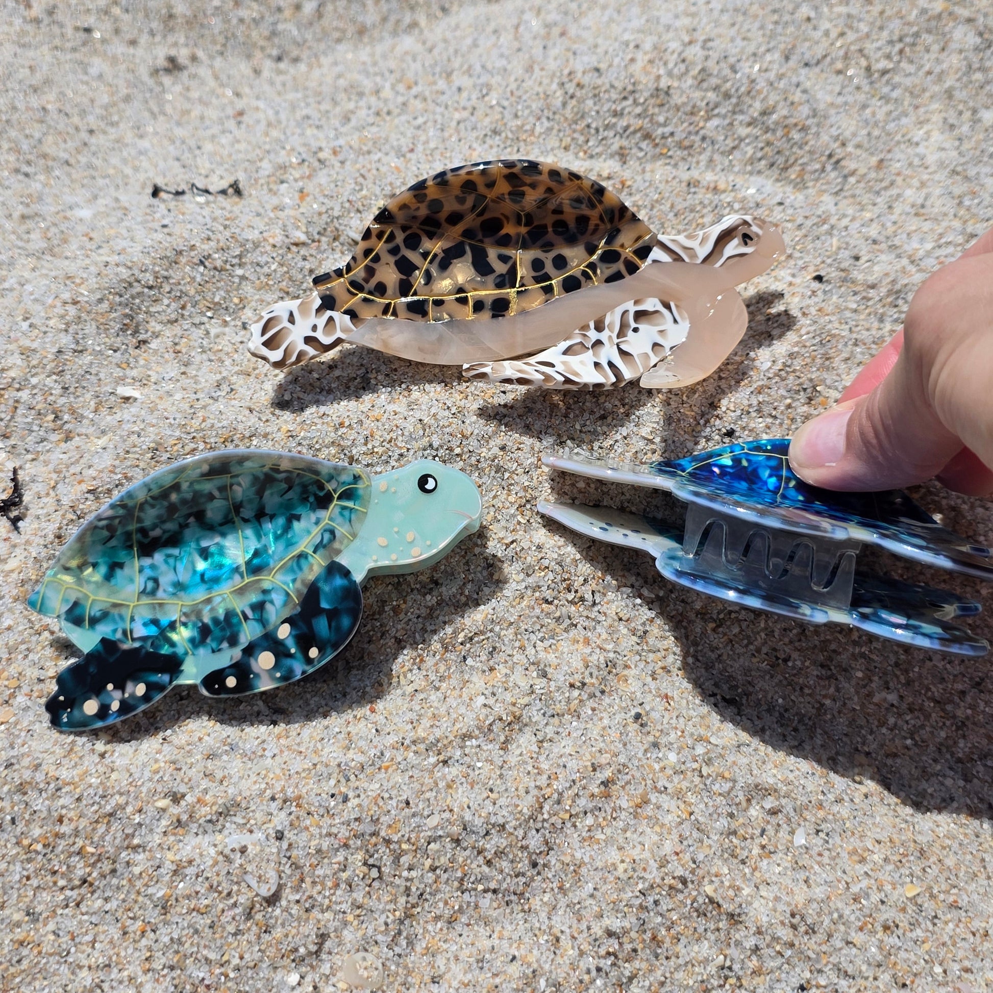 Add a splash of seaside magic with this turtle hair claw, available in lively teal green or rich ocean blue. Ideal for creating your enchanting Mermaid look, it grips securely even in thick hair while bringing a bright, beachy vibe. Choose your color and dive into coastal fun!